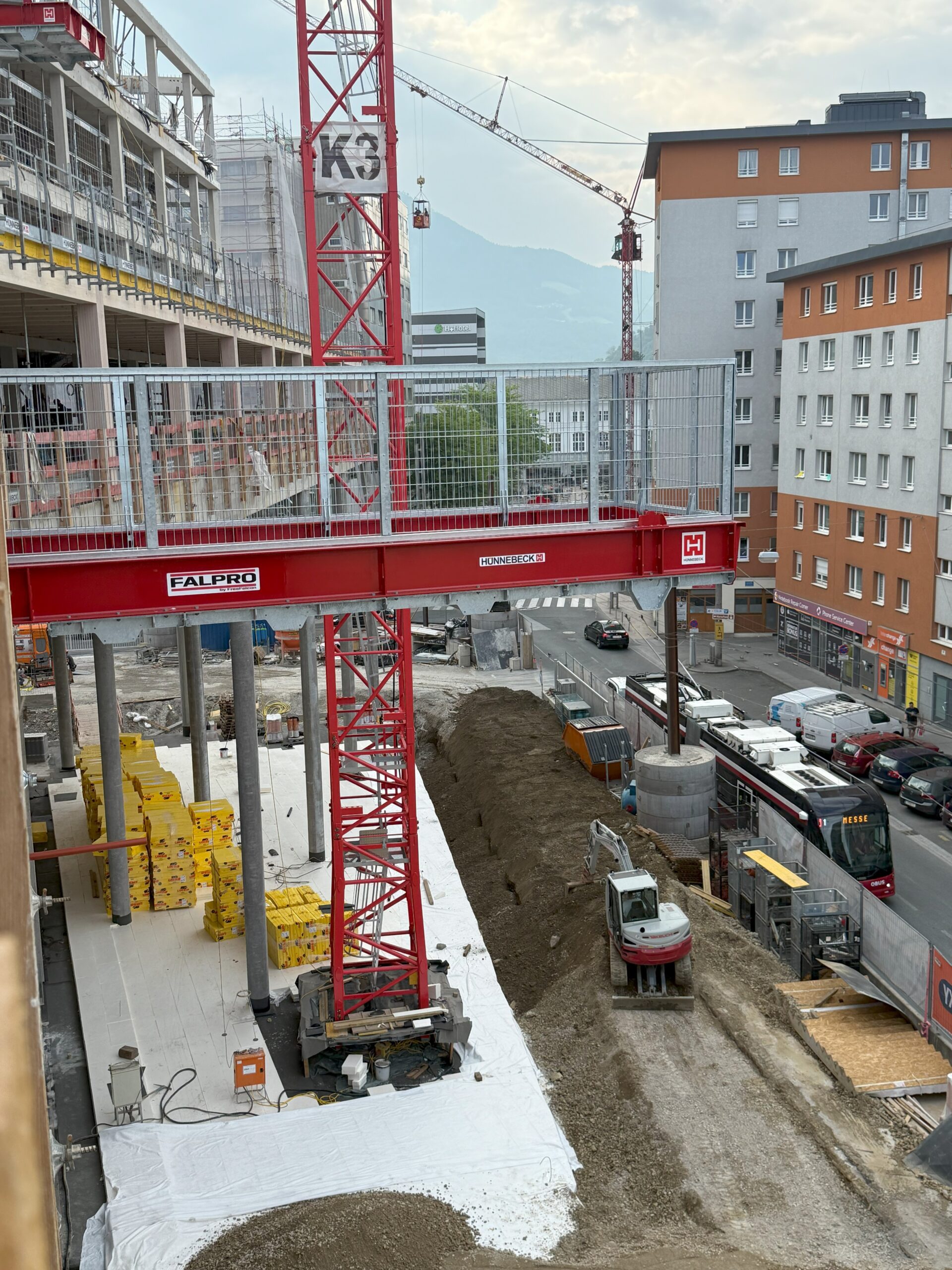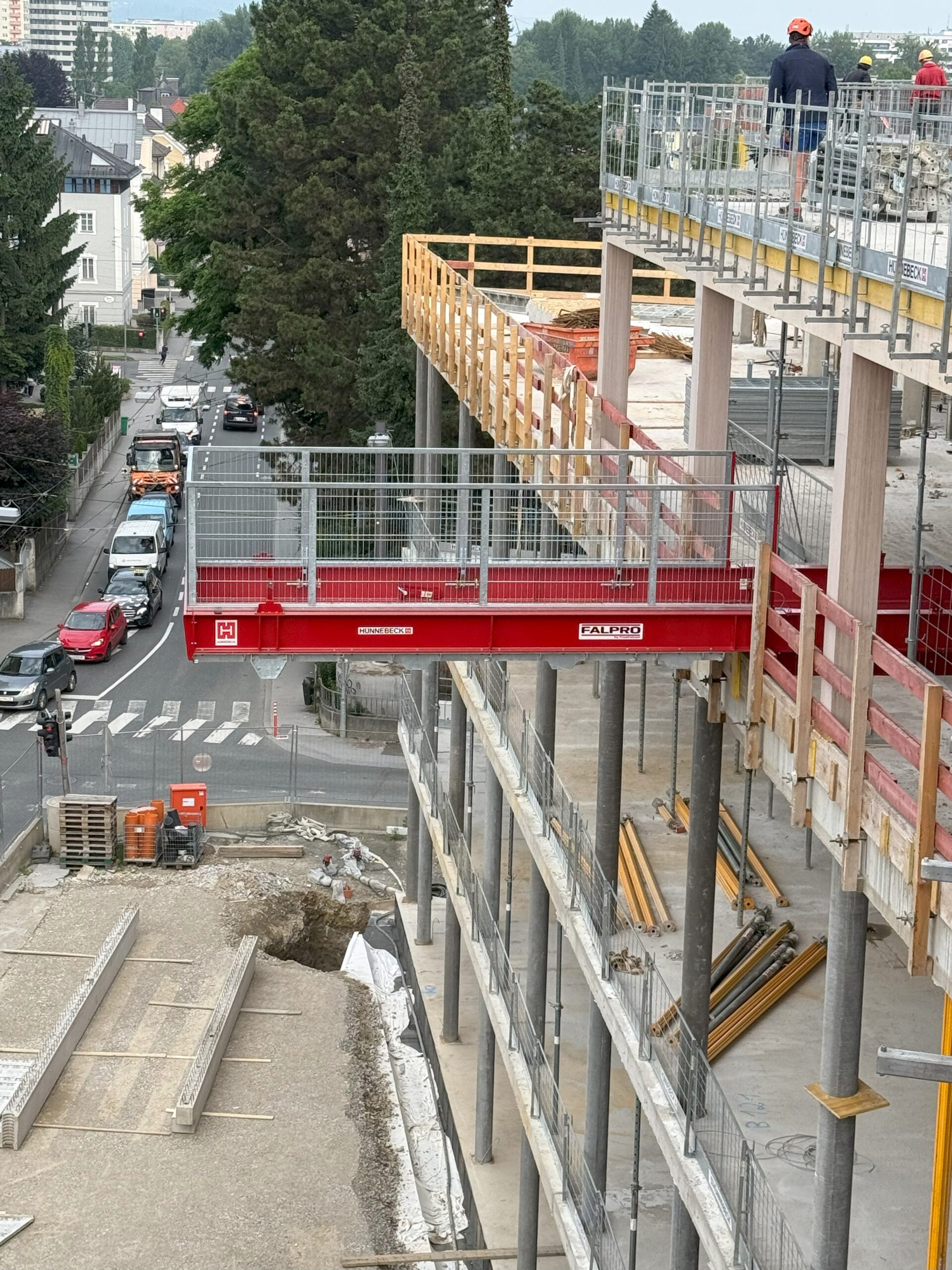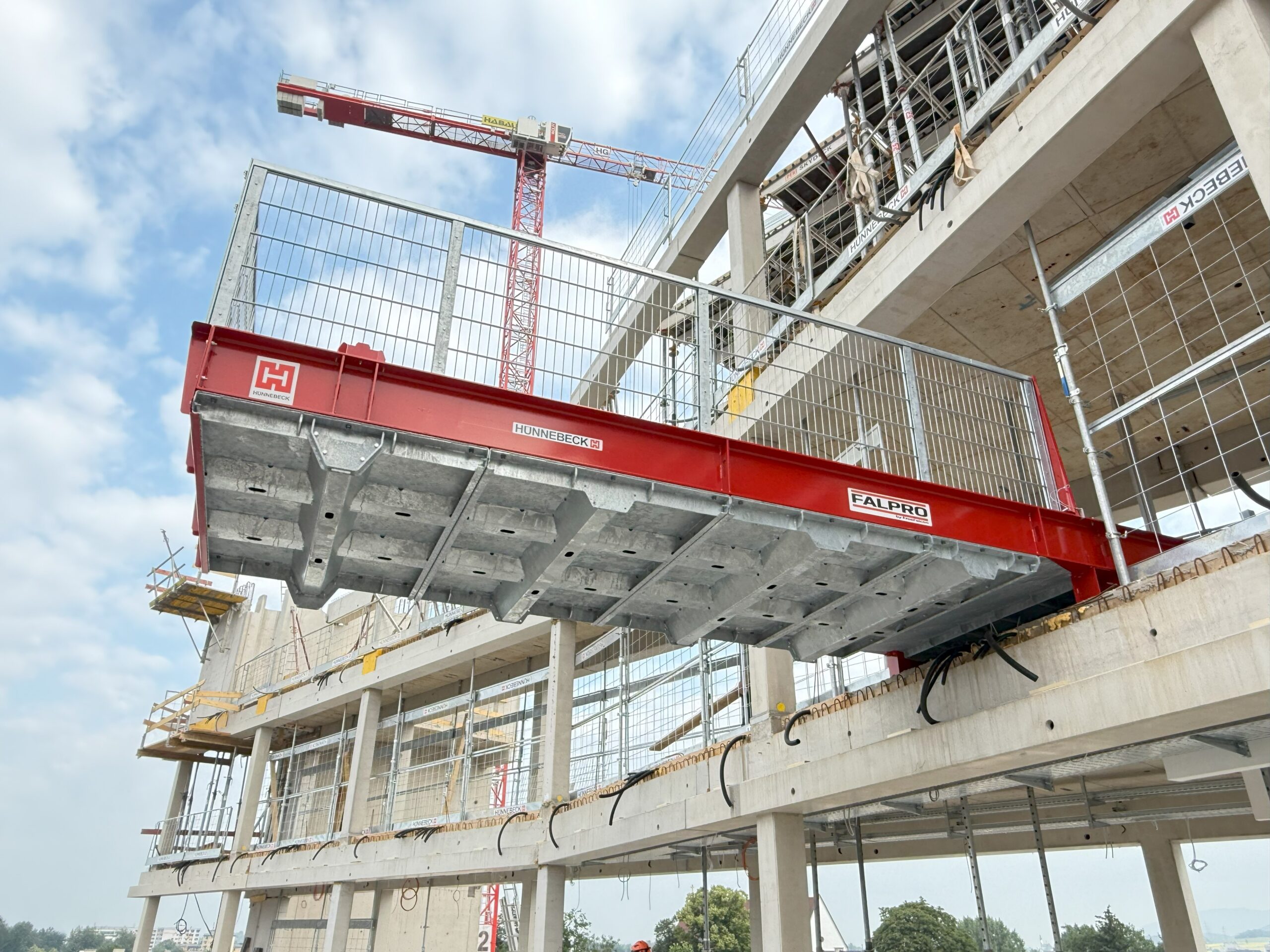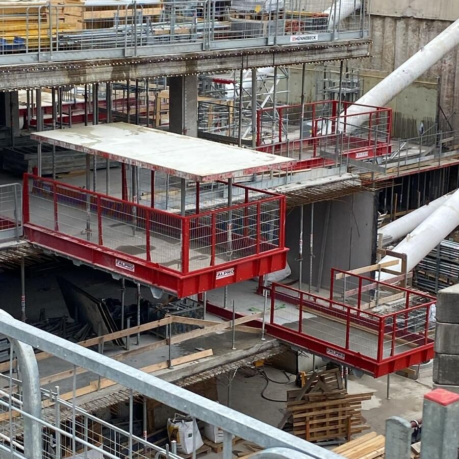 The Falpro Work Platform is designed to make material handling on construction sites safer and more efficient. By creating a secure external area for storing building materials, machinery, and equipment, it helps free up valuable interior workspace and keeps daily operations better organized. This added space supports smoother workflows and reduces congestion inside the building.
